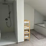 Επιπλέον, υπάρχουν στεγνωτήρας μαλλιών και πετσέτες. Το Mama-Apartments - Netflix, Balkon, Kaffee & Tee, Wifi, Waschmaschine, Familienfreundlich, Kostenloser Parkplatz - 125 Qm διαθέτει walk-in ντους και ξεχωριστή τουαλέτα.